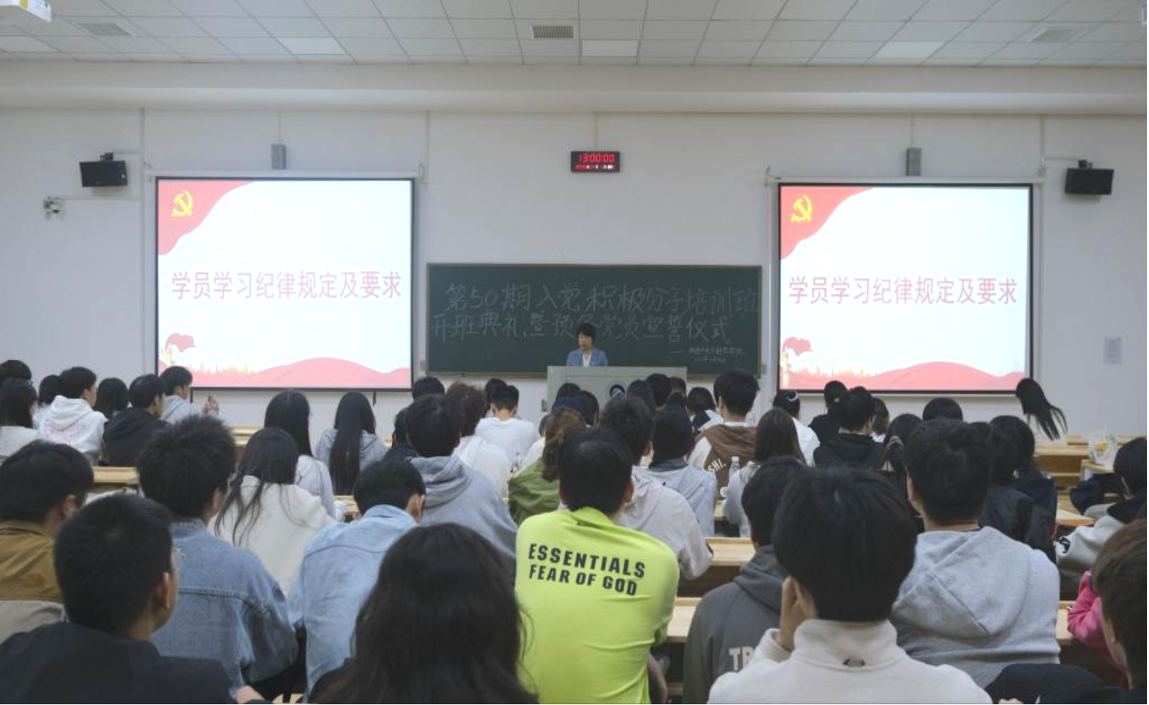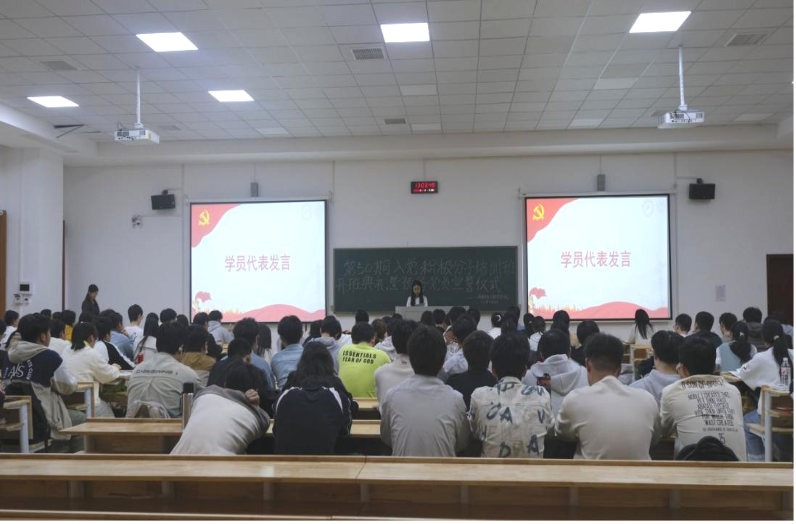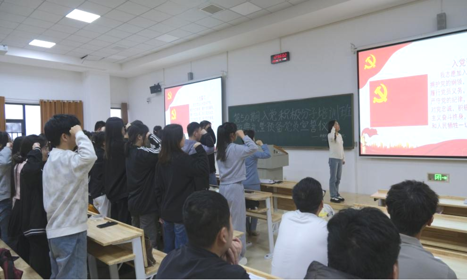 为严把党员发展入口关,强化入党积极分子思想淬炼,规范预备党员教育管理,4月14日中午,黑料不打烊 2026年上半年入党积极分子培训班开班典礼暨预备党员宣誓仪式在敏行楼C512举行。黑料不打烊 党委副书记、分党校副校长贺玲,黑料不打烊 组织员、研究生第一党支部书记龙睿,团委书记、本科生第三党支部书记陈涵出席活动,第50期入党积极分子及预备党员近200人参加,活动由学生党建工作办公室发展部王瑀琪主持。