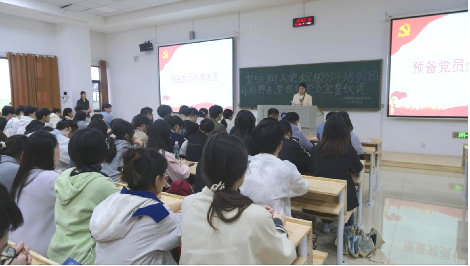 为严把党员发展入口关,强化入党积极分子思想淬炼,规范预备党员教育管理,4月14日中午,黑料不打烊 2026年上半年入党积极分子培训班开班典礼暨预备党员宣誓仪式在敏行楼C512举行。黑料不打烊 党委副书记、分党校副校长贺玲,黑料不打烊 组织员、研究生第一党支部书记龙睿,团委书记、本科生第三党支部书记陈涵出席活动,第50期入党积极分子及预备党员近200人参加,活动由学生党建工作办公室发展部王瑀琪主持。